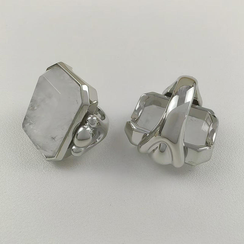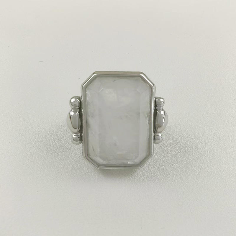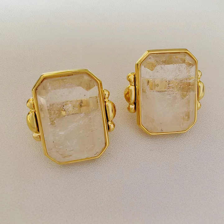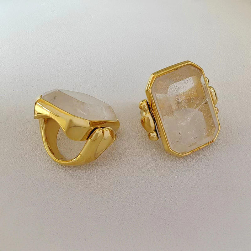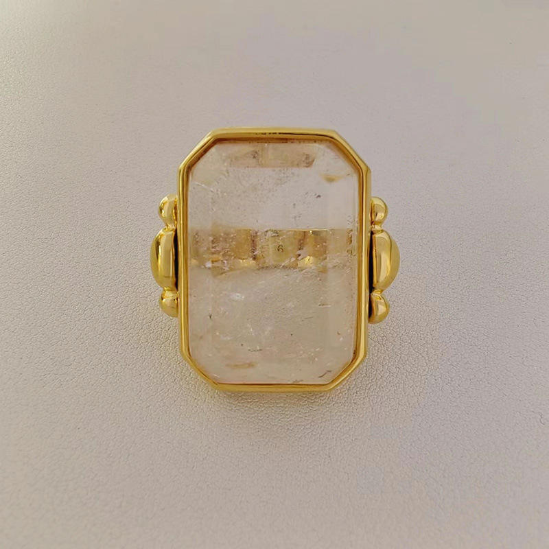 Anillo de cristal de azúcar de cubo grande de latón de alta sensibilidad de oro Retro francés, piedra Natural cuadrada de nicho de 18K para bodas exageradas