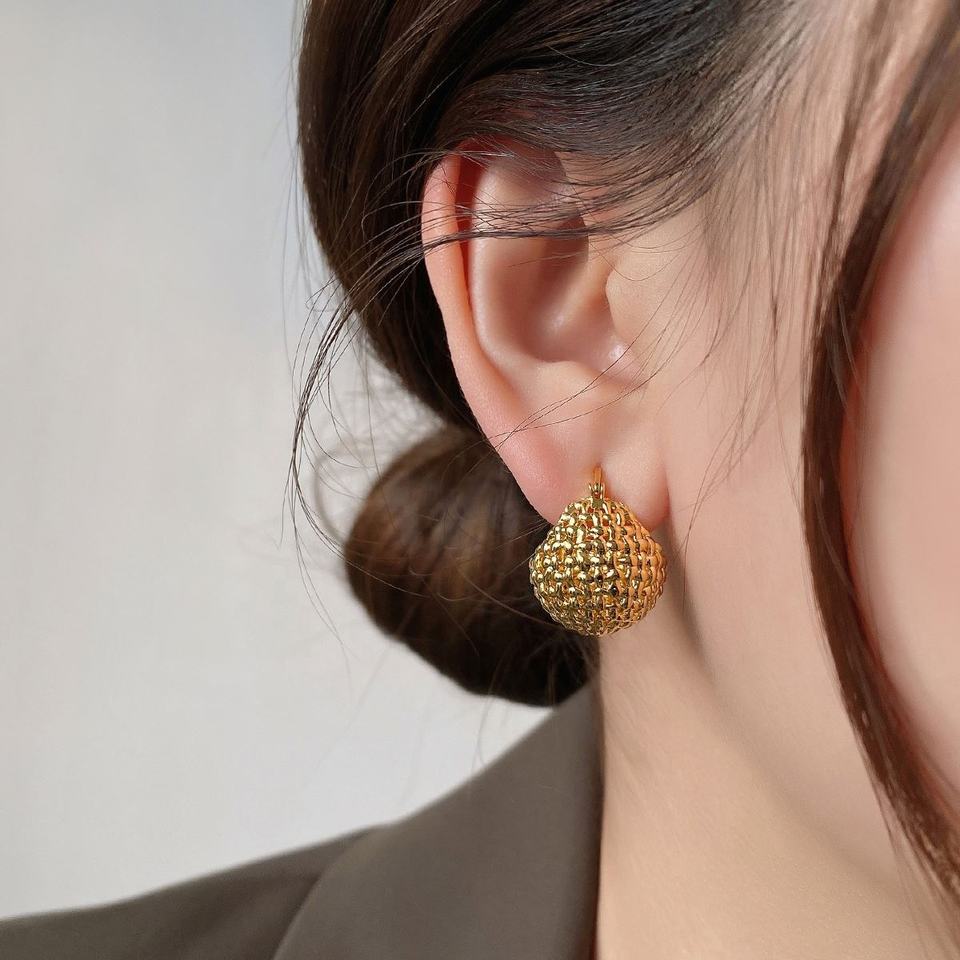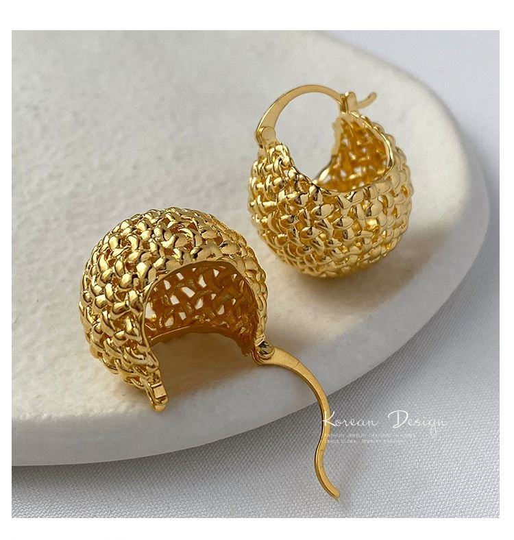 Pendientes de Aro con Baño de Oro Estilo Retro Francés y Coreano, con Circonita, Diseño Simple Tejido, Corazón Hueco, Patrón Geométrico, de Cobre, para Regalo