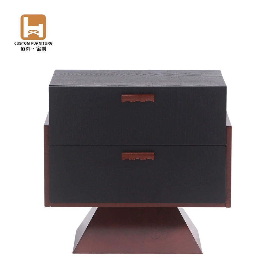 Mesita de Noche Estilo Retro Francés, Madera Maciza de Alta Calidad con Chapa, Diseño Piramidal, con Dos Cajones, Personalizable para Dormitorio de Hotel