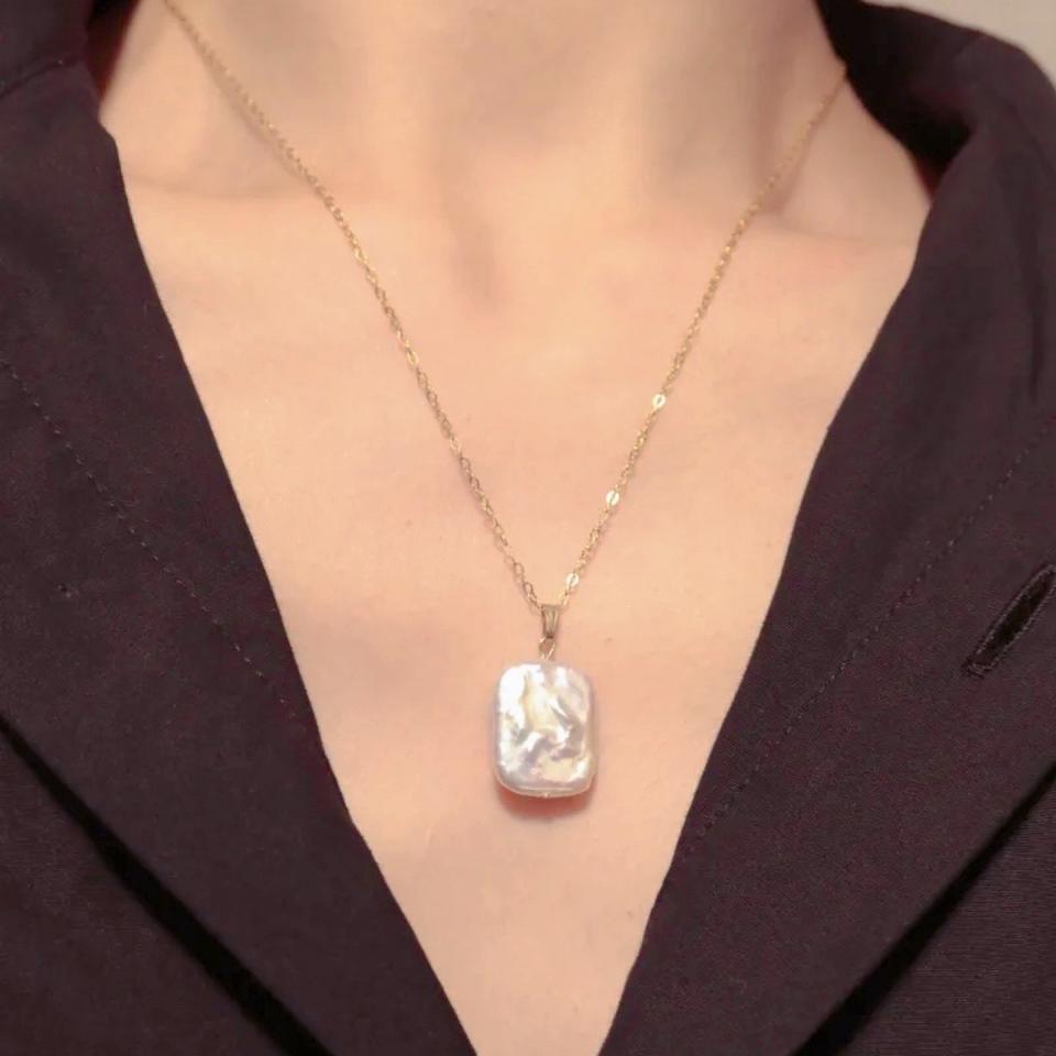 Collar de Perlas Arrugadas Naturales con Cadena de Clavícula Cuadrada de Estilo Barroco Simple Retro Francés para Mujer en Rosa Metálico y Morado