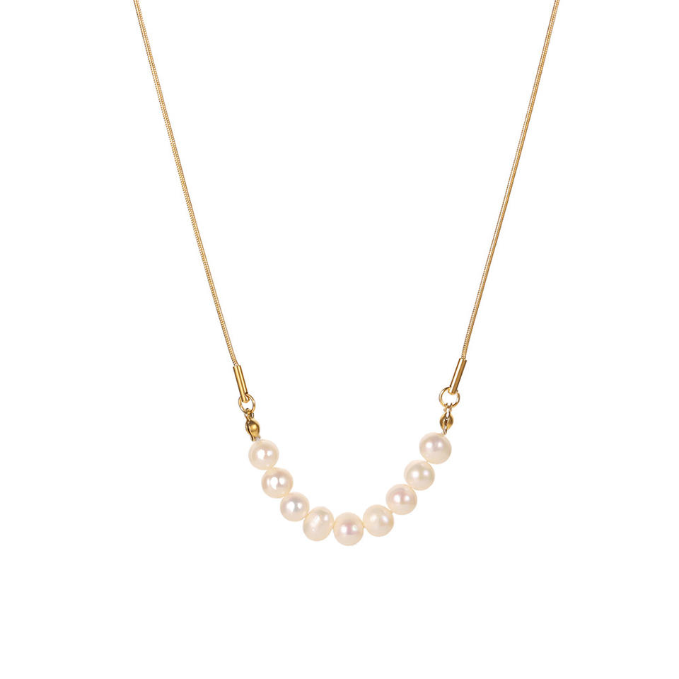 Collar Sencillo de Estilo Retro Francés para Mujer, Cadena de Hueso de Alta Gama, Diseño de Perlas de Agua Dulce, Moderno y Versátil