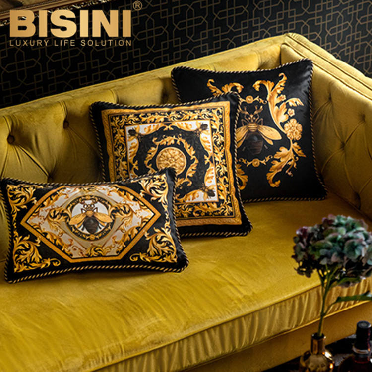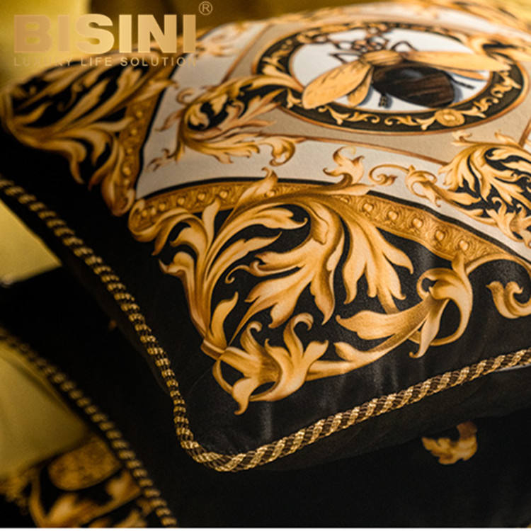 Cojines de respaldo para sala de estar, reposacabezas con borde de terciopelo corto, estilo francés Rococo, cuatro abejas, diseño de hiedra arabesca dorada