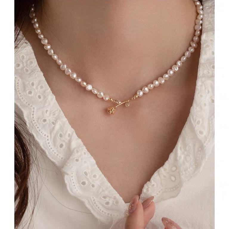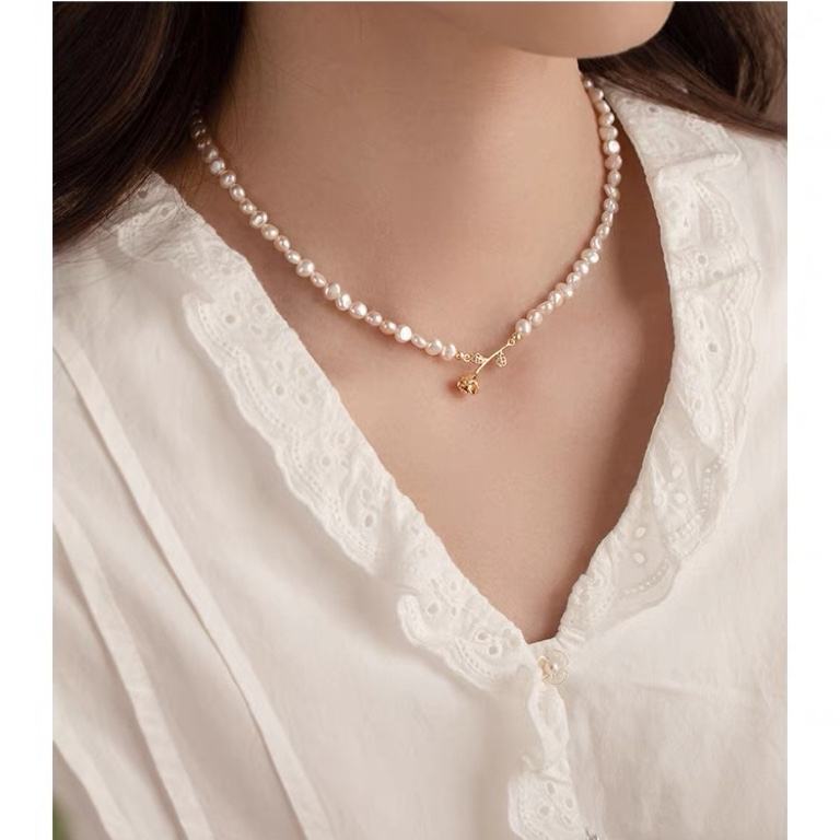 Collar de Perlas Barrocas Francesas para Mujer, Diseño de Cadena para Clavícula Irregular Extremadamente Fino, Estilo Único y Exclusivo