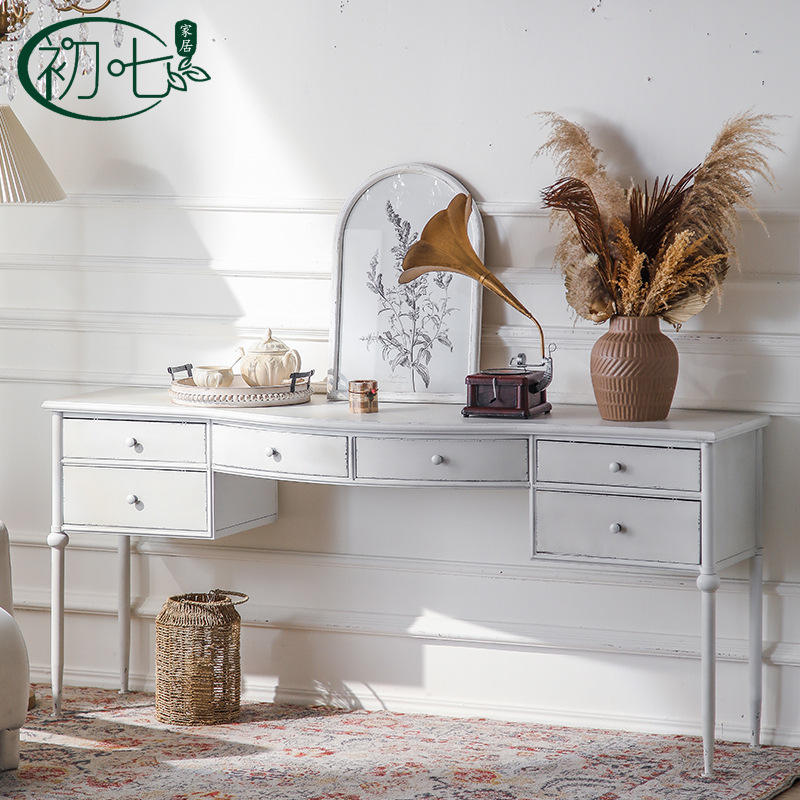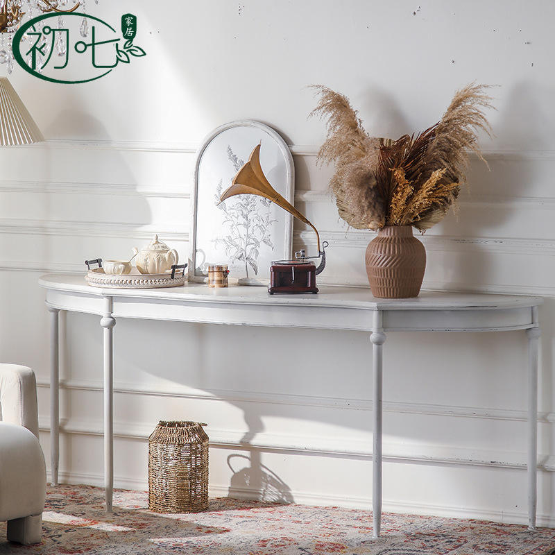Mesa Consola Estilo Francés con Tapa de Mármol Blanco, Mueble para Entrada o Sala de Estar