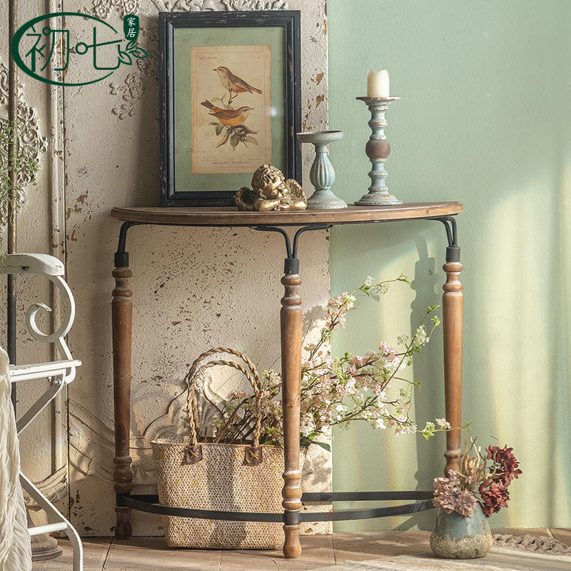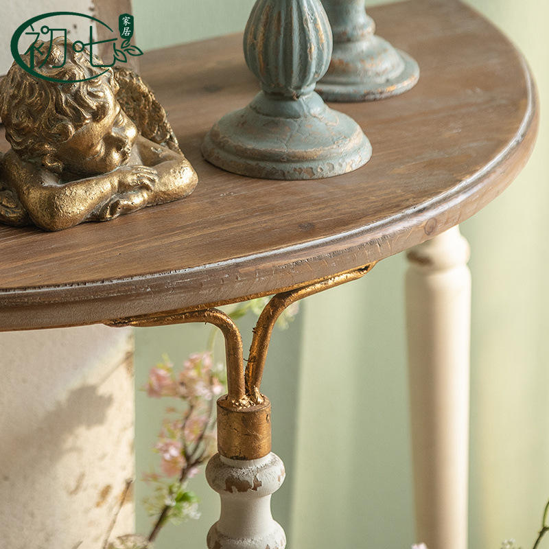 Mesa Consola Estilo Francés con Superficie de Madera y Acabado Desgastado para Decoración de Sala de Estar o Entrada