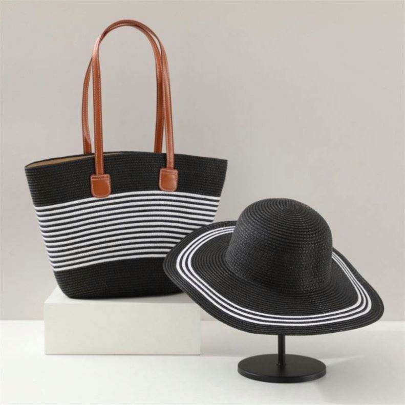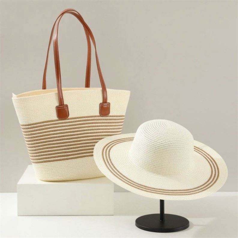 Bolso de Hombro Estilo Francés, Tipo Sombrero de Paja, Unisex, Verano, Gran Capacidad, Rayado, para Playa, Viajes, Casual