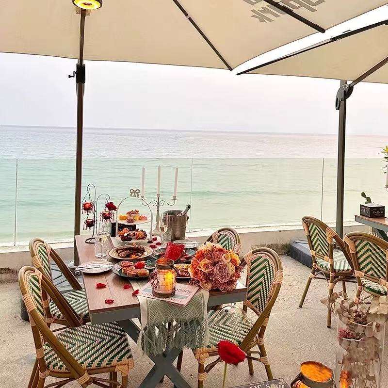 Juego de Mesa y Sillas de Comedor de Mimbre Estilo Francés para Restaurante, Cafetería, Bar, Hogar y Exterior