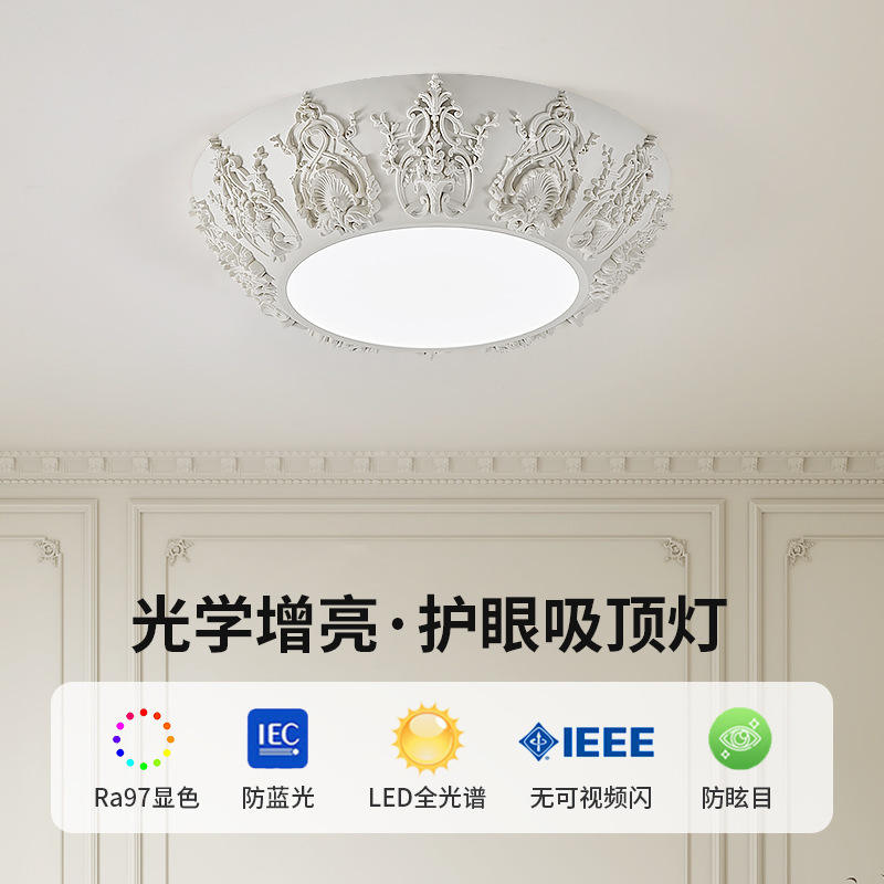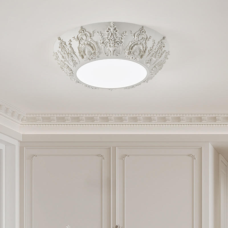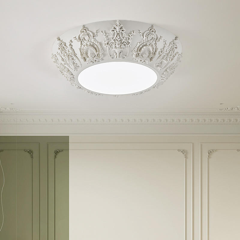 Lámpara de Techo Redonda de Estilo Francés, Retro, con Relieve, para Dormitorio, Comedor, Iluminación de Estudio de Alta Gama, 6000K CCT, para Oficina en Casa