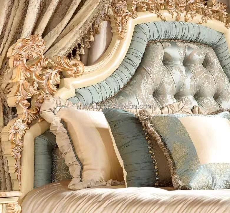 Elegante cama king size de madera tallada