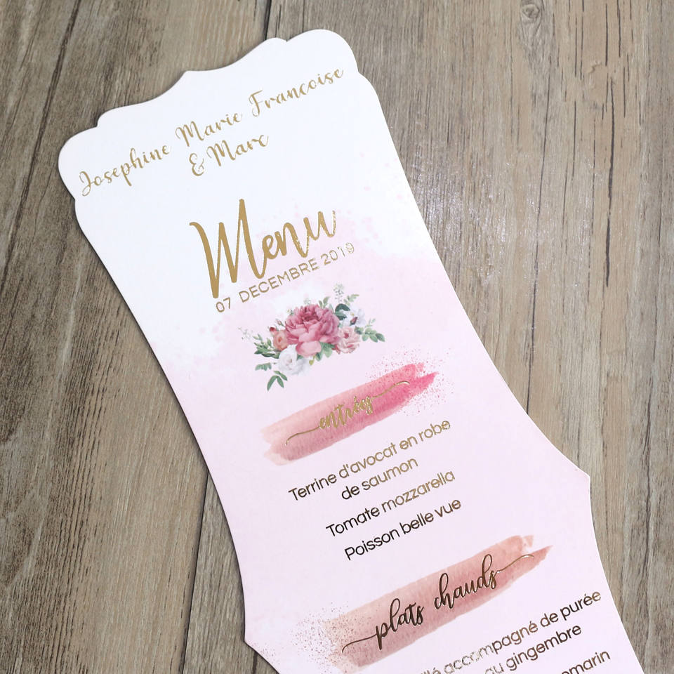 Menú de boda de estilo francés Tarjetas de mesa de impresión UV Fiesta Tarjeta de agradecimiento Tarjeta de proceso de reunión para boda