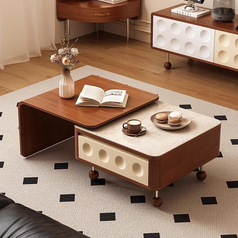 French Vintage Style Extendable Coffee Table Wood Top Multi Functional Square Sofa Side Table Small Apartment Use