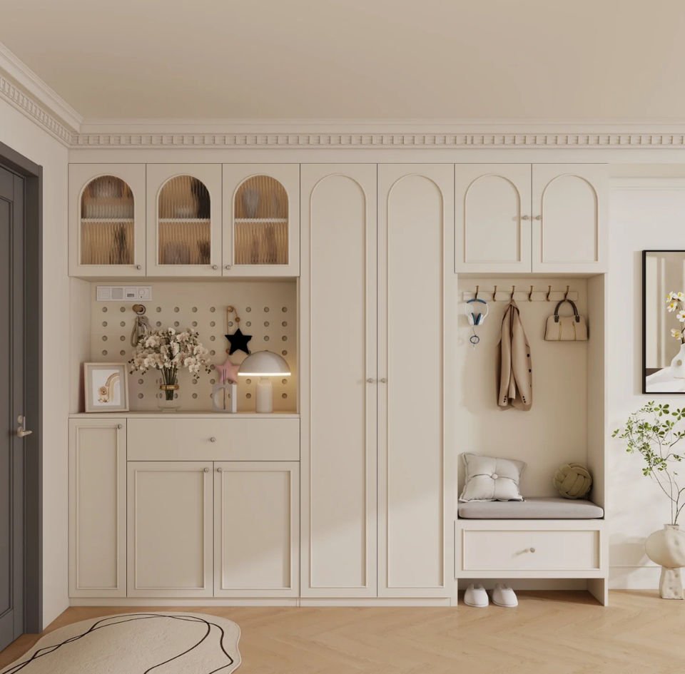 Almacenamiento de armario de zapatos de entrada de crema francesa