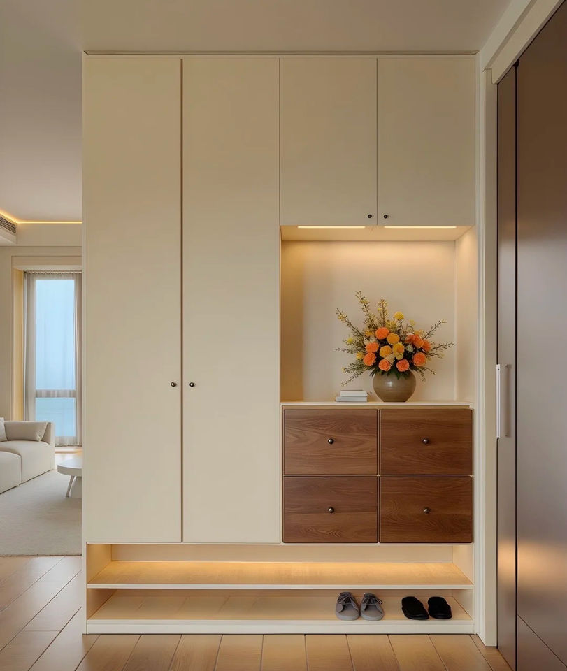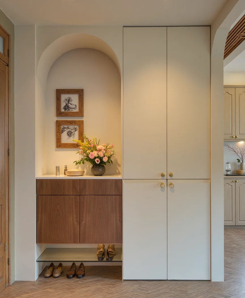 Almacenamiento de armario de zapatos de entrada de crema francesa