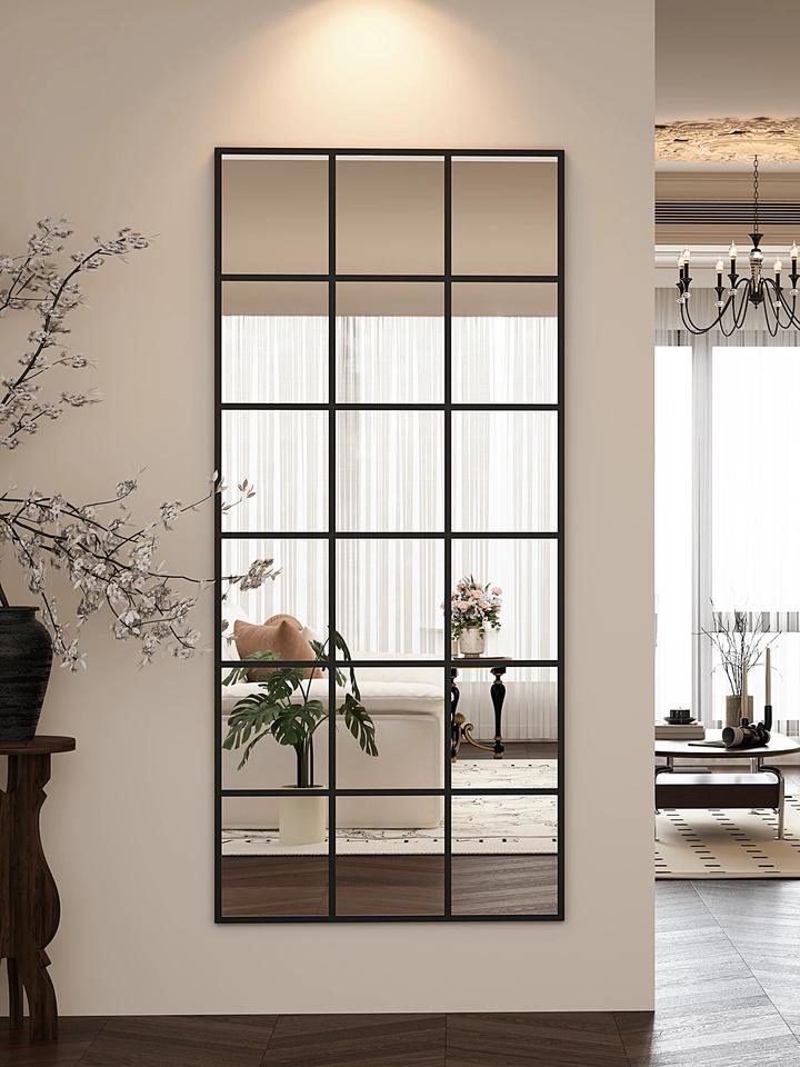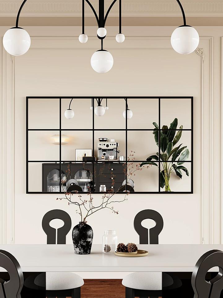 Espejo Decorativo de Pared para Sala de Estar, Estilo Francés, Rectangular, con Marco de Hierro Blanco y Negro
