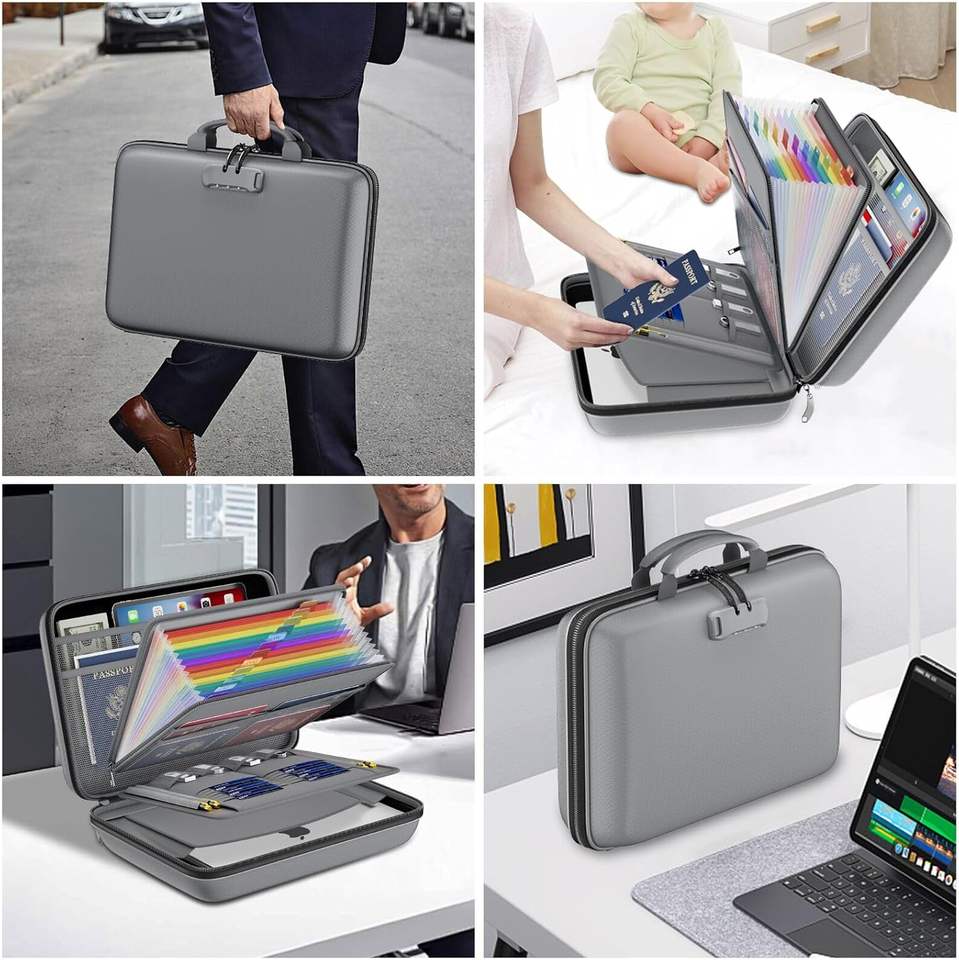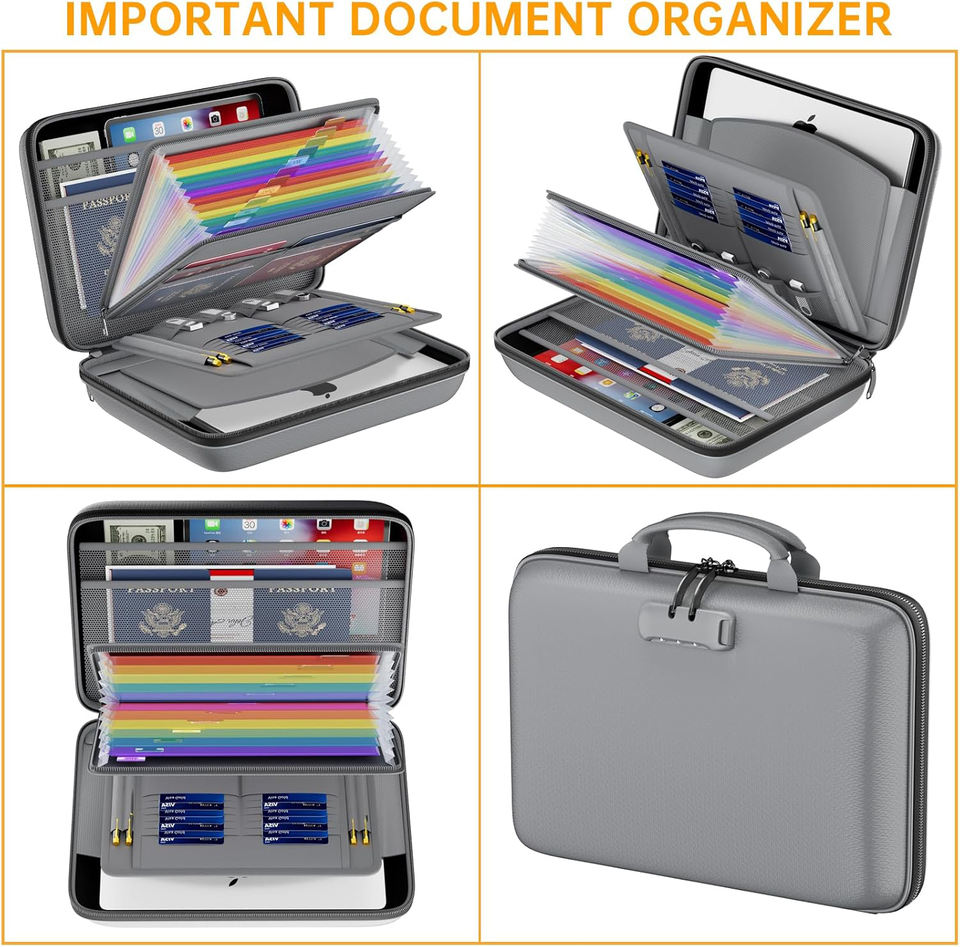Carpeta Ignífuga Portátil, Caja de Almacenamiento, Organizador, Maletín Ignífugo con Cerradura para Archivos, Pasaportes y Certificados
