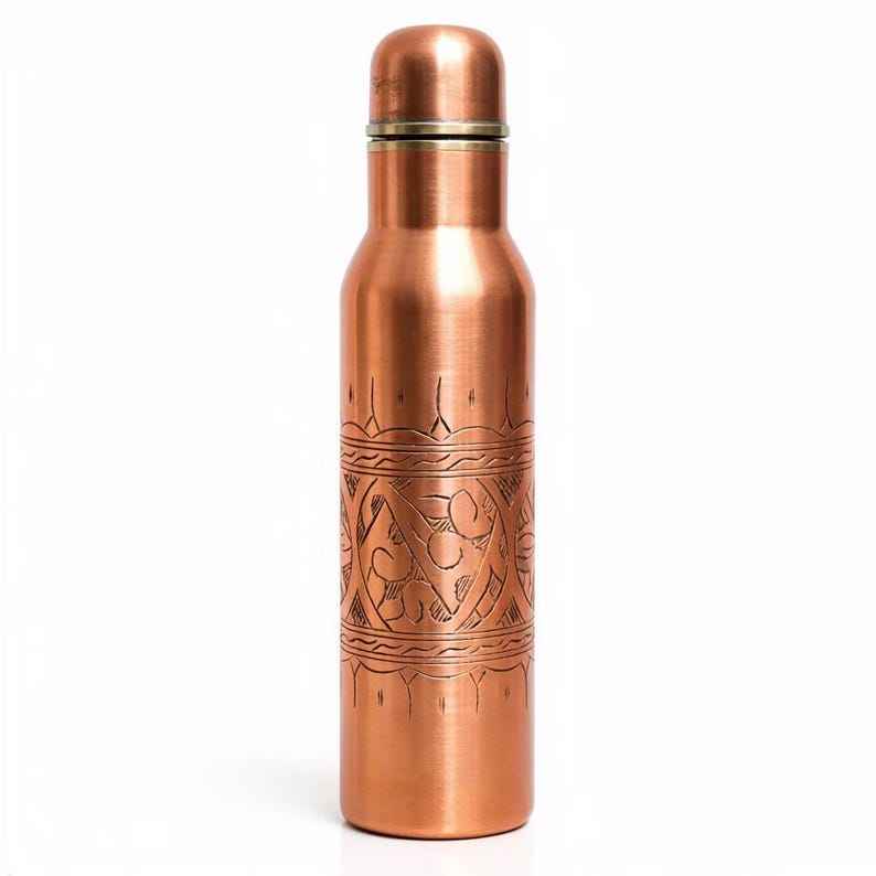 Recién Llegada: Botella de Agua de Cobre Puro Hecha a Mano y Personalizada con Detalles Grabados Tradicionales - Nombre Grabado con Láser Personalizado