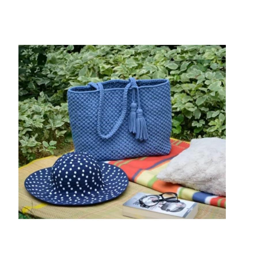 Bolsos de mano de hombro de macramé de color azul fresco Diseño estándar para mujeres Monedero de mano de diseñador Precio bajo Fácil de sostener y llevar