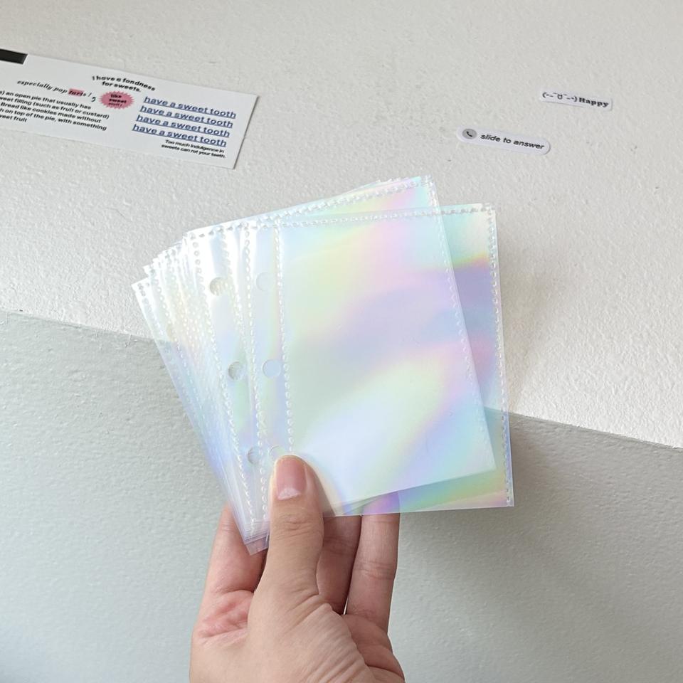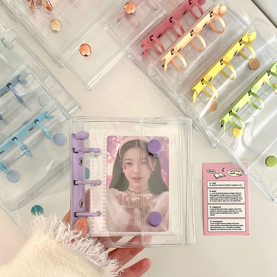 Mini bolsa con cremallera de 3 agujeros y doble botón de color caramelo fresco, cuaderno de tarjetas, libro de hojas sueltas brillante, álbum de almacenamiento de rejilla única A8