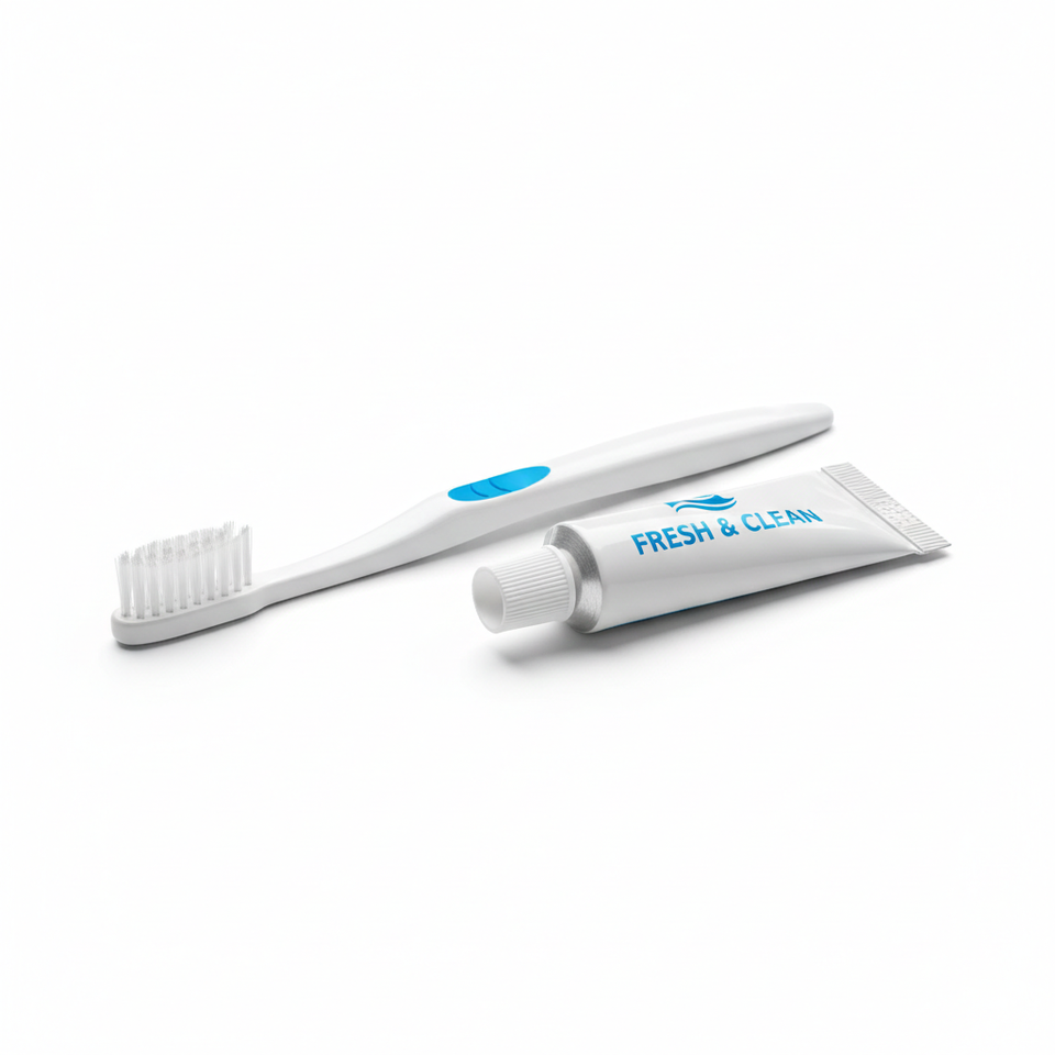 Juego de Cepillo y Pasta de Dientes de Viaje Fresco y Limpio con Sabor a Menta para Adultos, Origen EE. UU., Marca OEM