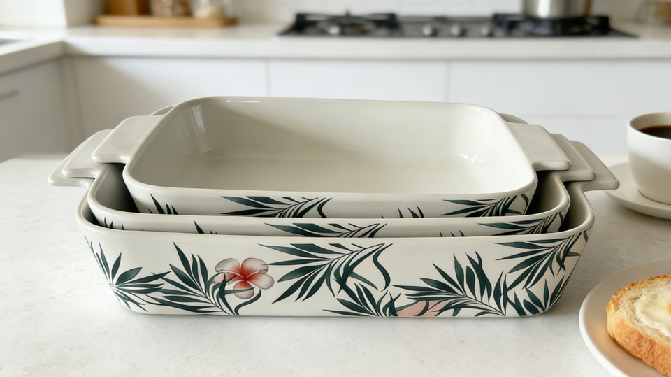 Juego de Tres Moldes para Pan de Cerámica con Diseño Fresco y Moderno. Recipiente Rectangular Resistente al Calor para Hornear