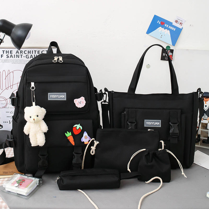 Mochila Unisex de Verano, Gran Capacidad, Impermeable, Diseño de Bloques de Color, Panel Exterior de Lona, Juego de Cinco Piezas