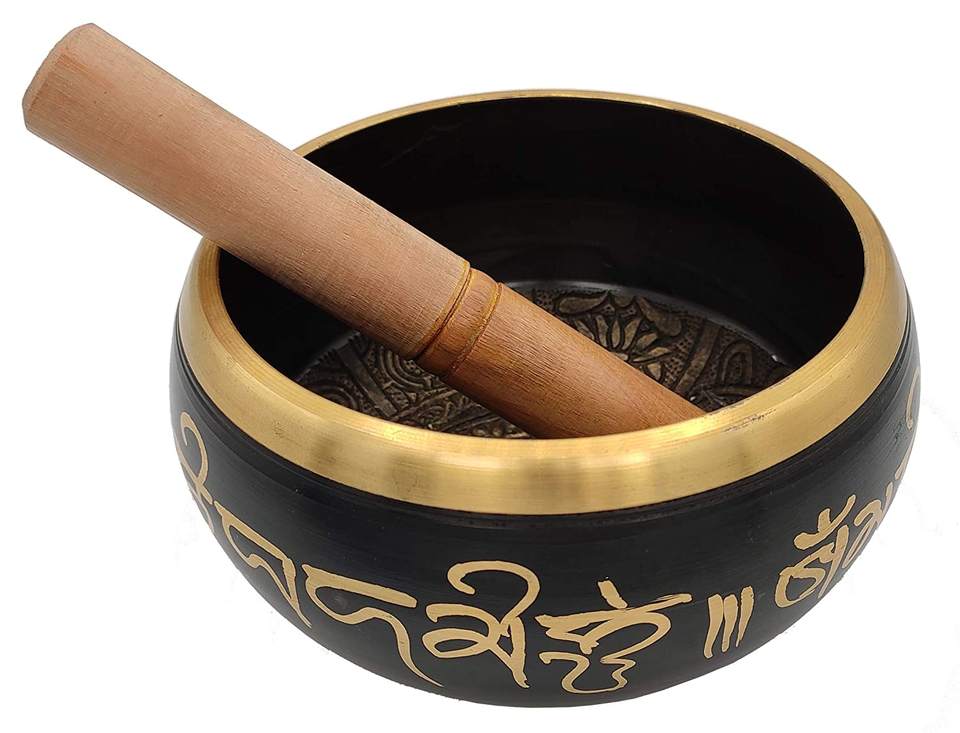 Cuenco tibetano fresco hecho a mano del Himalaya con Mazo y almohada | Cuenco de sonido Budista para meditación y yoga