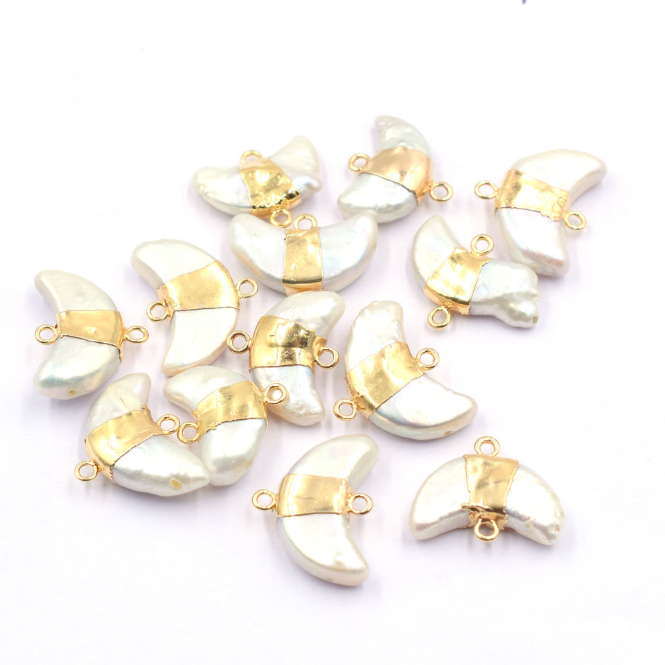Nombre del Producto:Conector Chapado en Oro con Perla de Agua Dulce en Forma de Luna