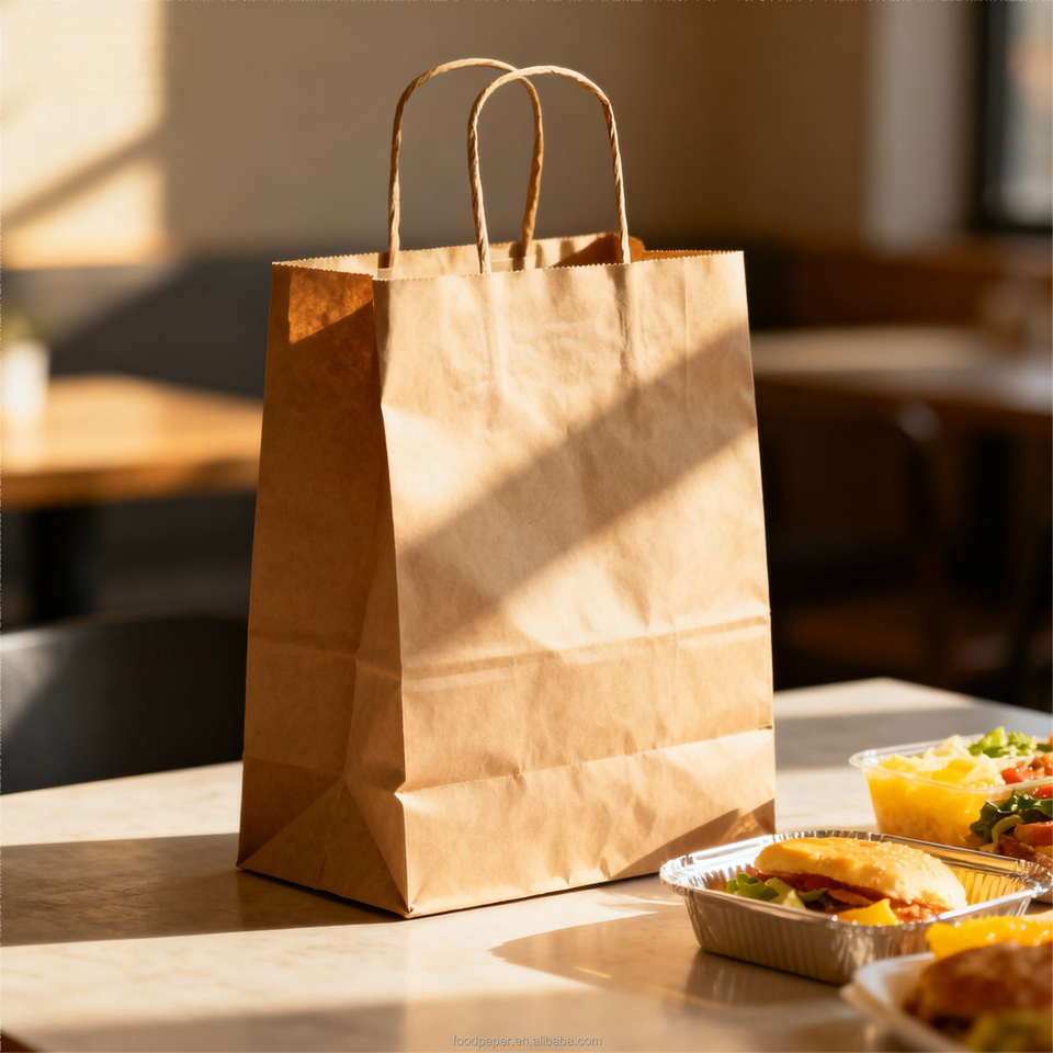 Bolsa de Papel Kraft para Mantener la Frescura con Asas para Entrega de Frutas y Verduras, Empaque de Productos Orgánicos, Logotipo Personalizado