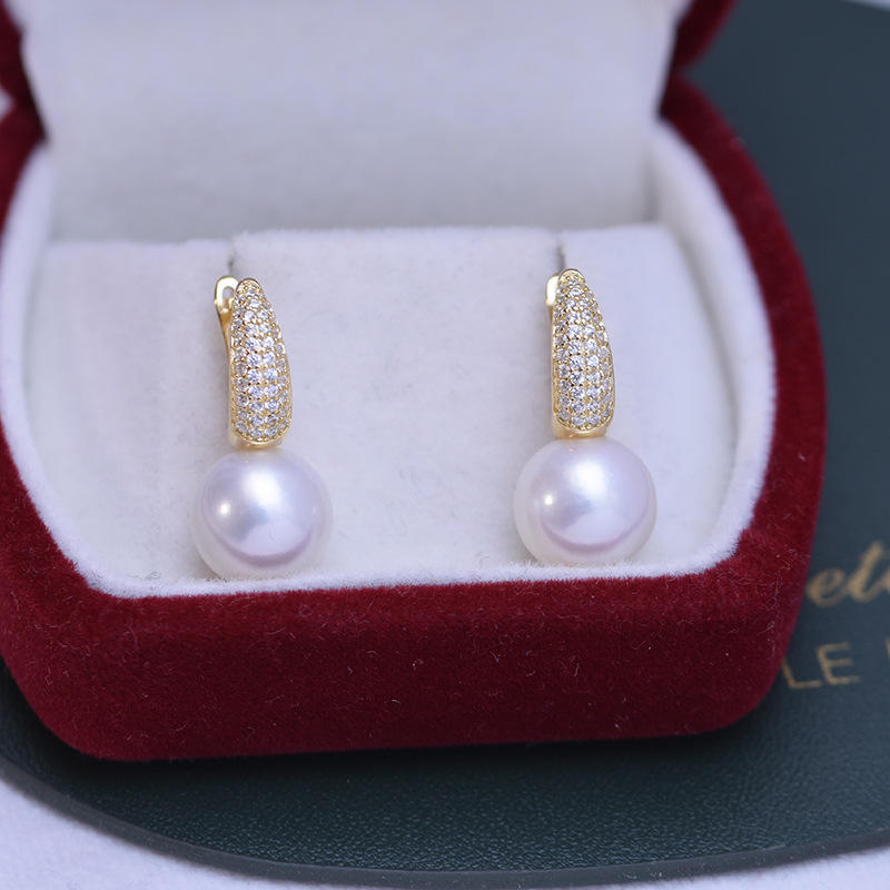 Pendientes de Perlas de Agua Dulce de 10-11 mm, Grandes, Blancas y Púrpuras, Redondas, con Luz Intensa, Ligeras Imperfecciones, Plata de Ley S925, Joyería de Perlas de Primera Calidad