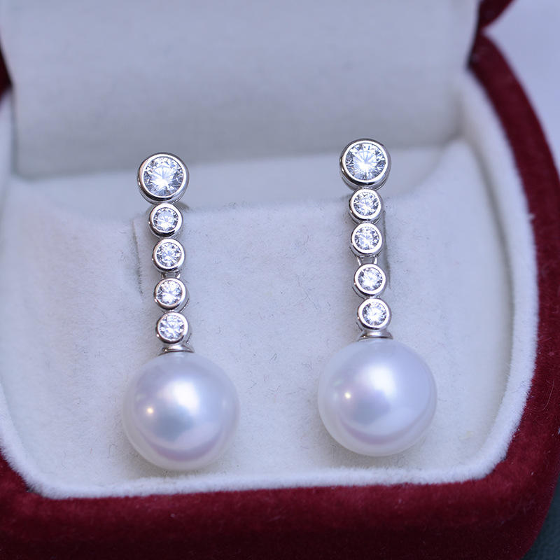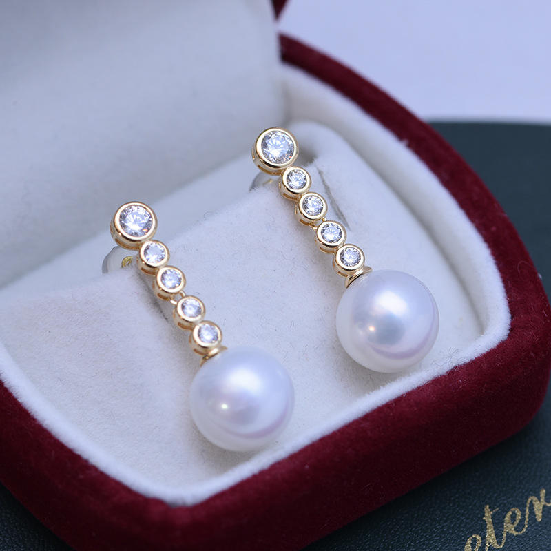Pendientes de Perlas Redondas Blancas de Agua Dulce de 11-12 mm para Mujer, Oro S925 con Luz Intensa y Pequeñas Imperfecciones, Diseño Simple