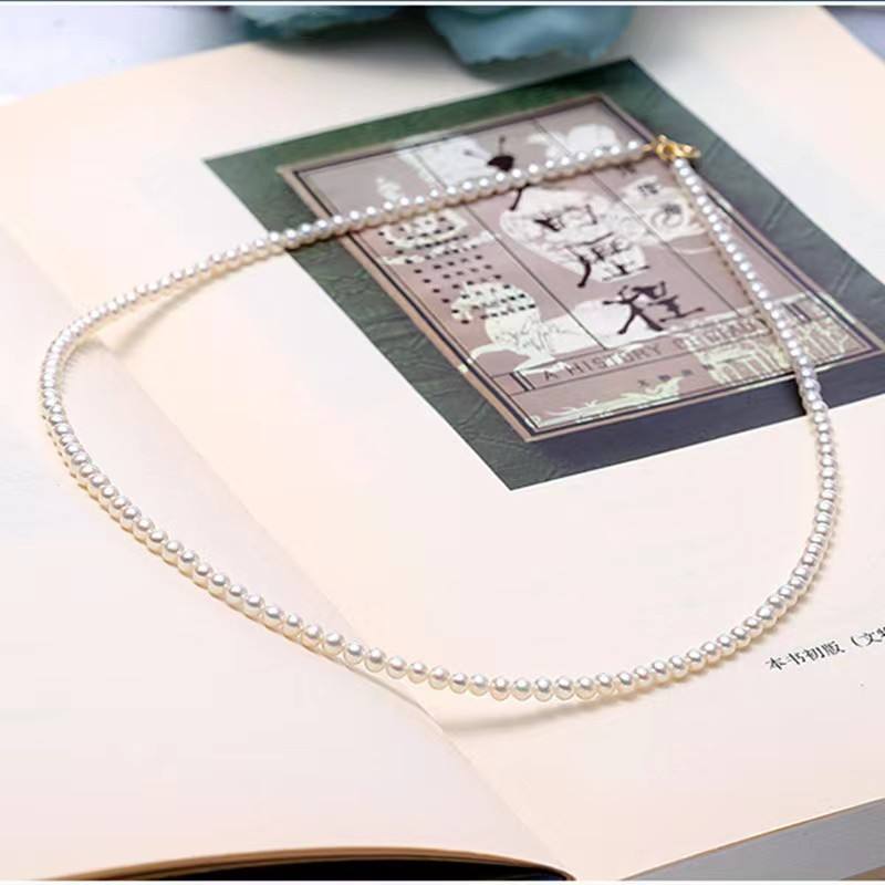 Collar de Perlas de Agua Dulce, Perlas Pequeñas de 3.5mm con Cadena de Plata S925, Collar Pequeño y Elegante de Moda