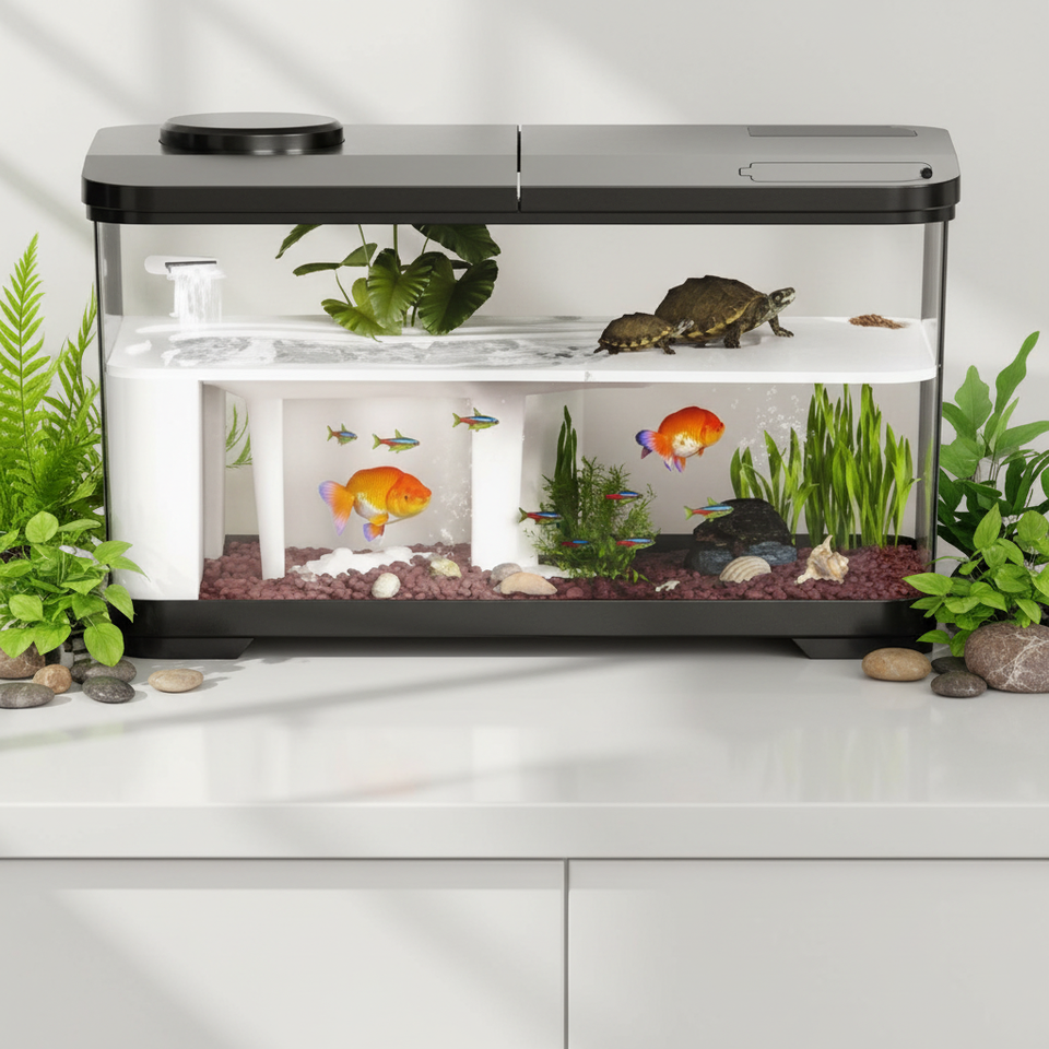 Kit de Acuario Ecológico para Peces de Agua Dulce y Tortugas, Específico para Tortugas, con Doble Función de Aislamiento y Filtración