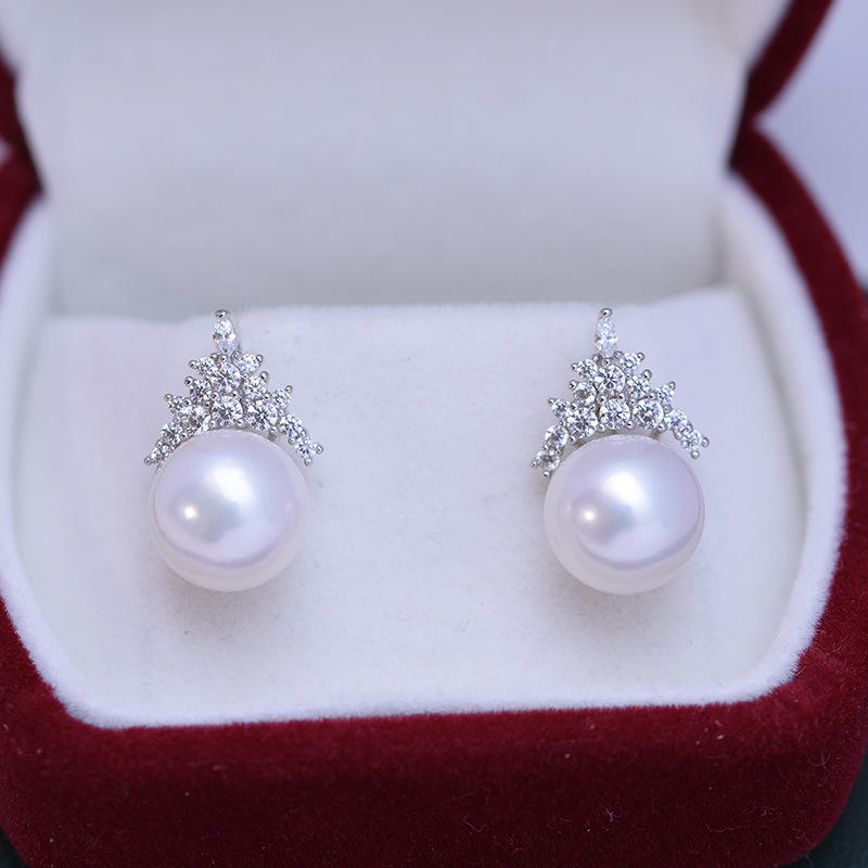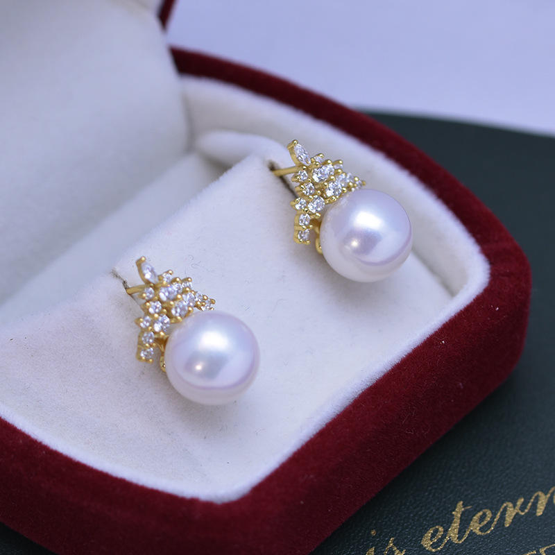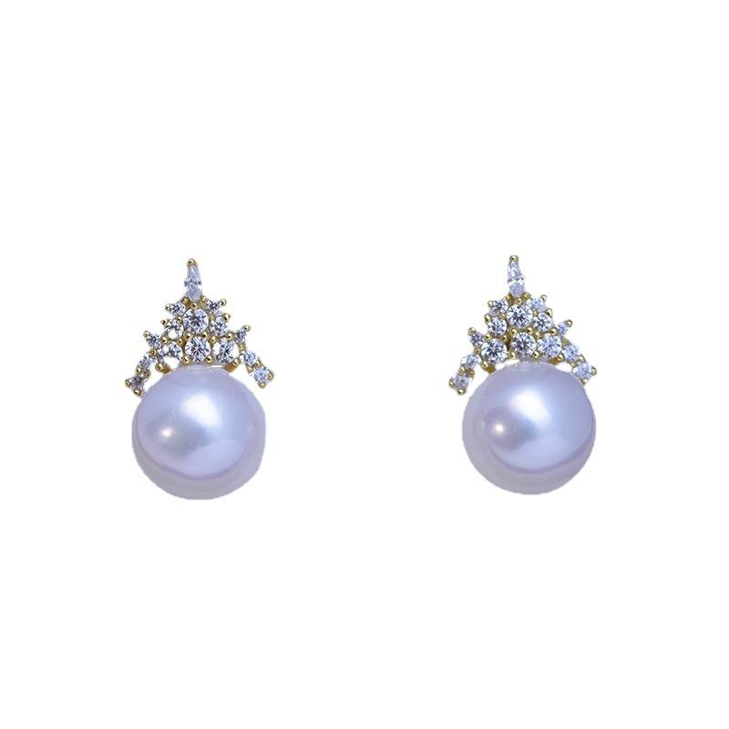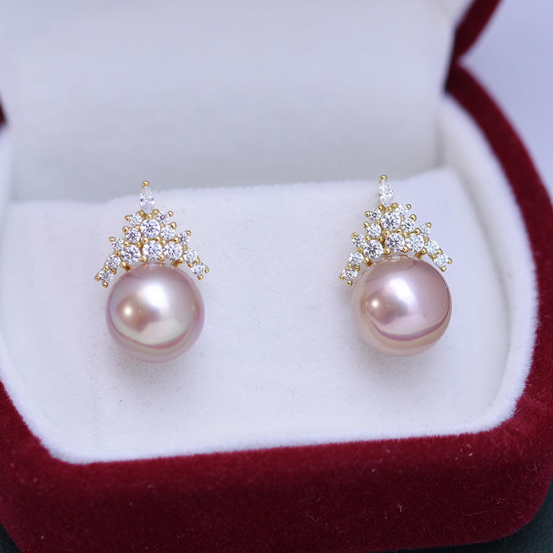 Pendientes de Plata de Ley S925 con Perlas Redondas de Agua Dulce de 11-12 mm, Diseño Simple con Perlas Blancas y Púrpuras de Luz Intensa