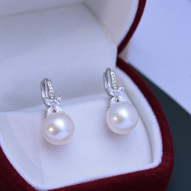 Pendientes de Perlas de Agua Dulce de 11-12 mm, Blancas, con Luz Intensa, Ligeras Imperfecciones, Plata S925, Diseño de Dragón, Pendientes de Perlas de Alta Calidad S925