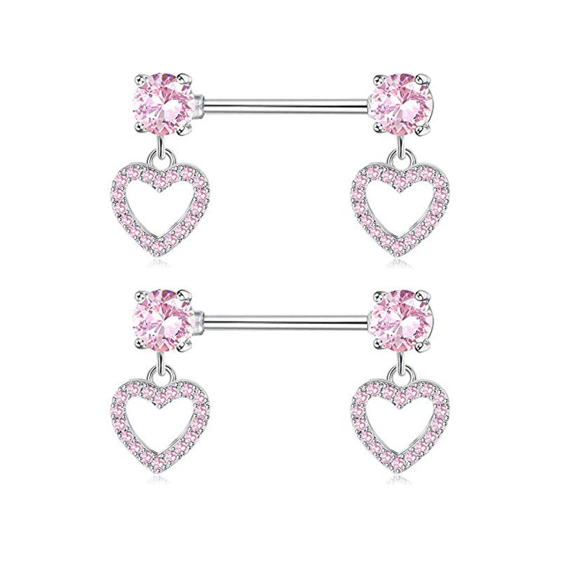 Freya Anillos de Piercing para Pezón, Barra con Colgante de Mariposa y Corazón, Joyería de Piercing para Seno, Acero Quirúrgico, Pendientes para Hélice y Tragus