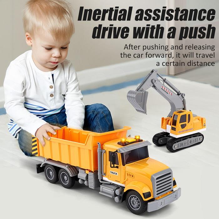 Juego de Juguetes de Construcción de Fricción, Camión Volquete Simulado, Excavadora, Camión Mezclador de Ingeniería, Juguete con Luces y Sonidos