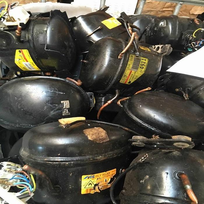 Reciclaje de compresores de refrigeradores y neveras, compresores usados en stock, chatarra de motores eléctricos