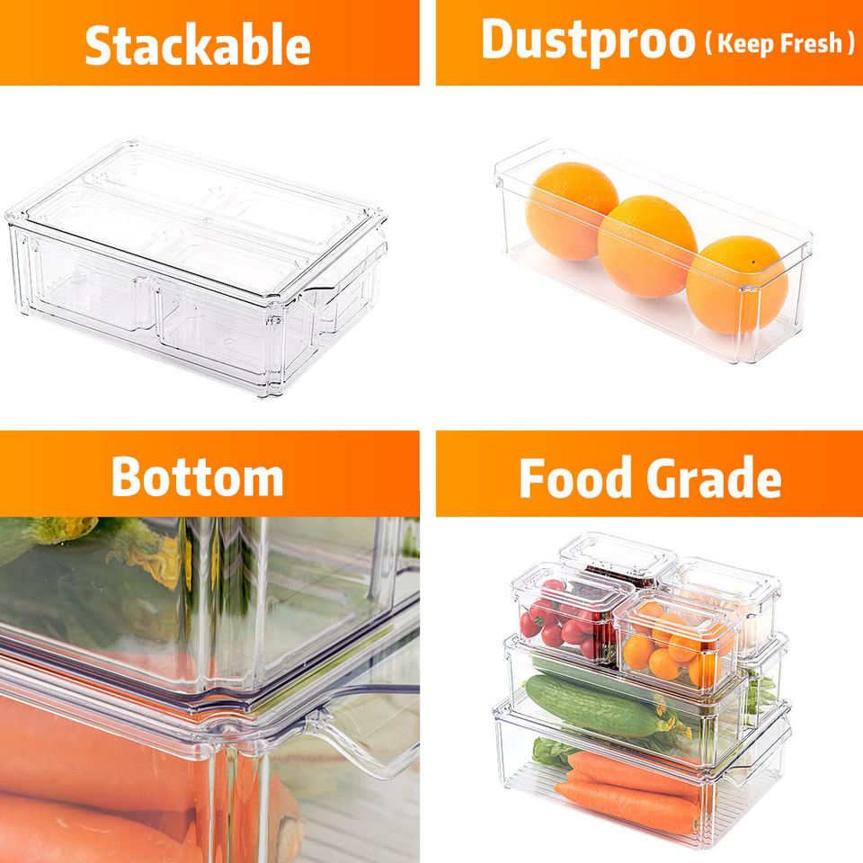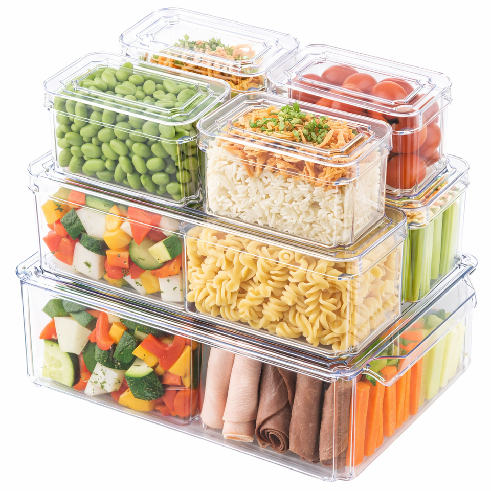 Juego de Recipientes Transparentes para Refrigerador, Cajas Organizadoras Apilables con Tapas para Almacenamiento en la Cocina