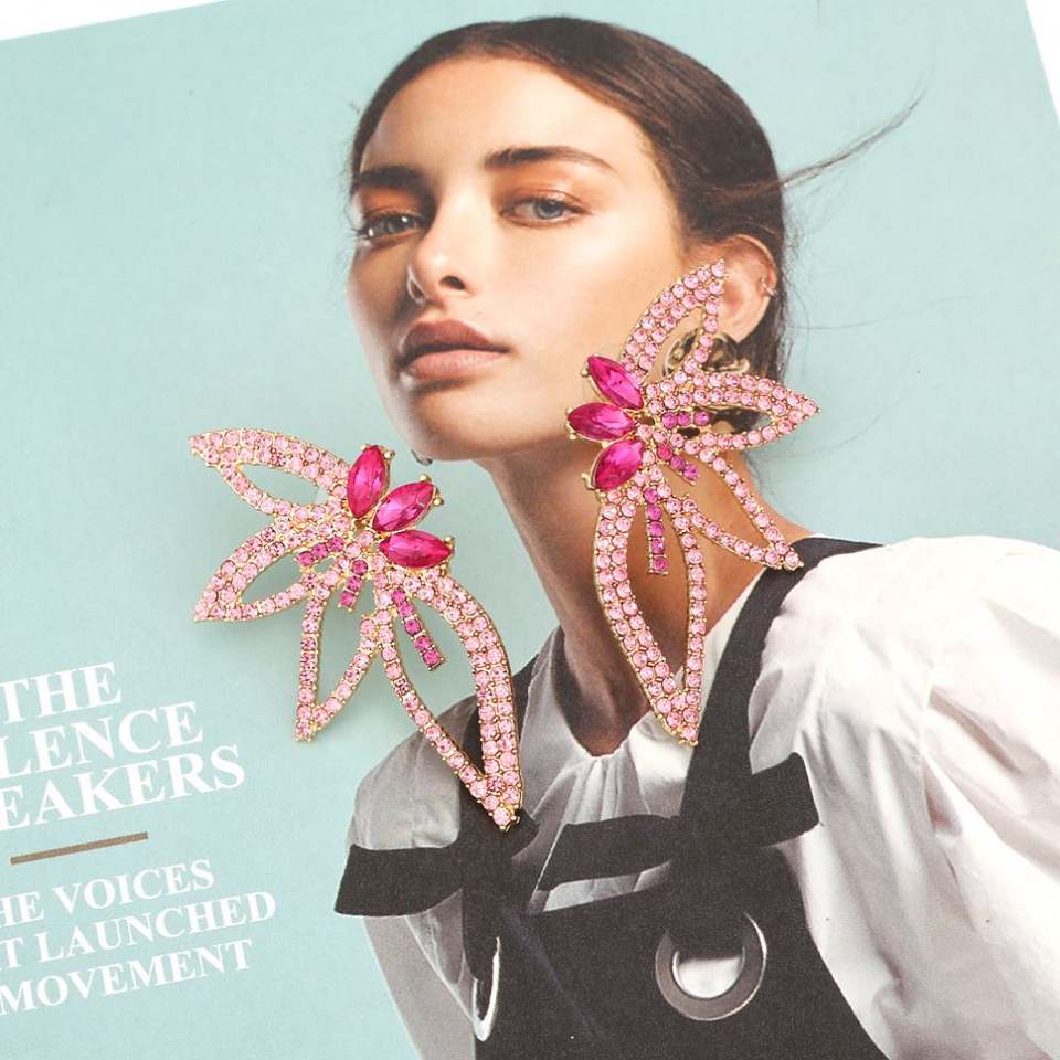 Nombre del producto:Pendientes de hojas de diamantes de lujo ligeros