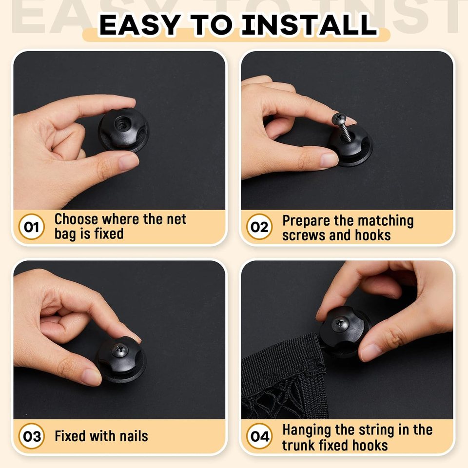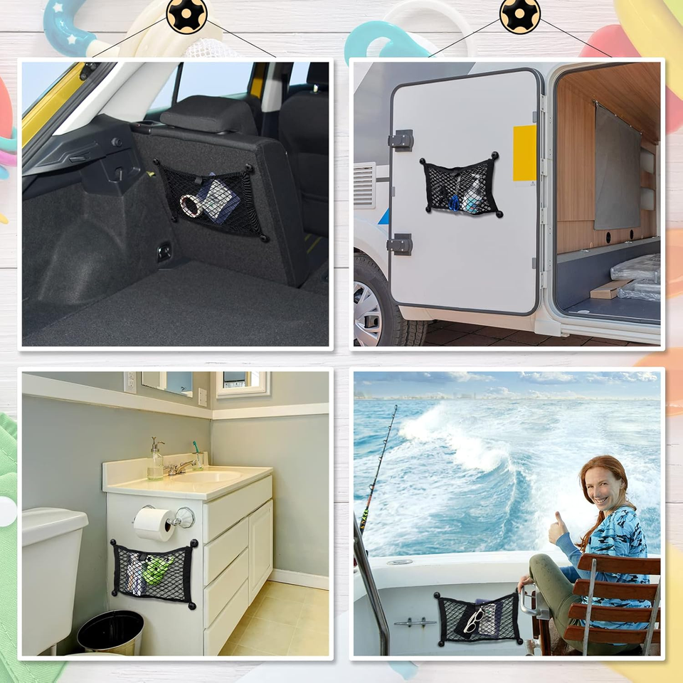 Frienda - Juego de 2 Redes de Carga Elásticas Pequeñas, Bolsa de Malla de Almacenamiento, 8 Tornillos/Ganchos de Montaje para Camioneta/Auto/SUV/Barcos, Organizador
