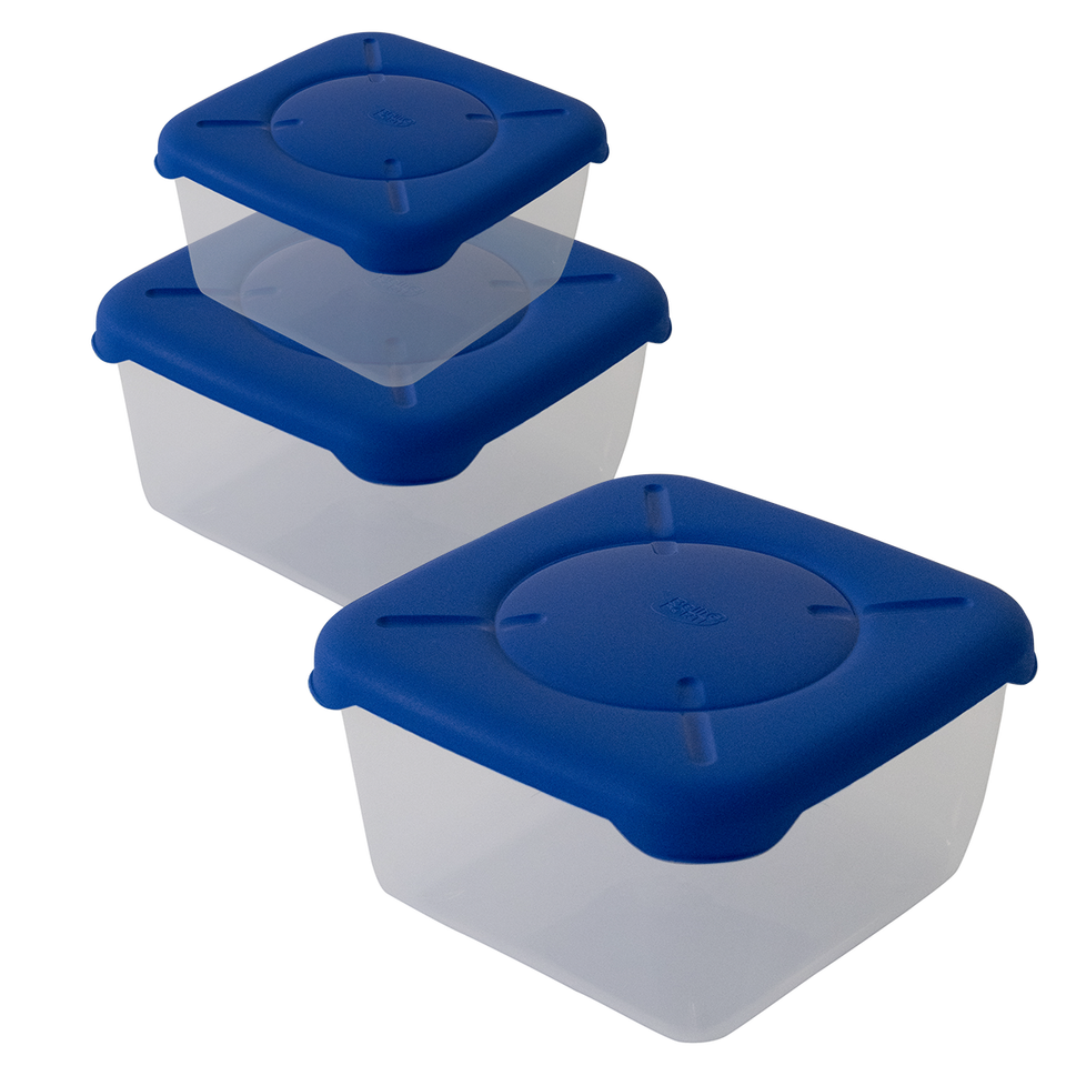 Recipientes Cuadrados para Almacenamiento de Alimentos Frigobella, Juego de 0.50, 1.00 y 1.75 L con Tapa Azul para Uso en la Cocina