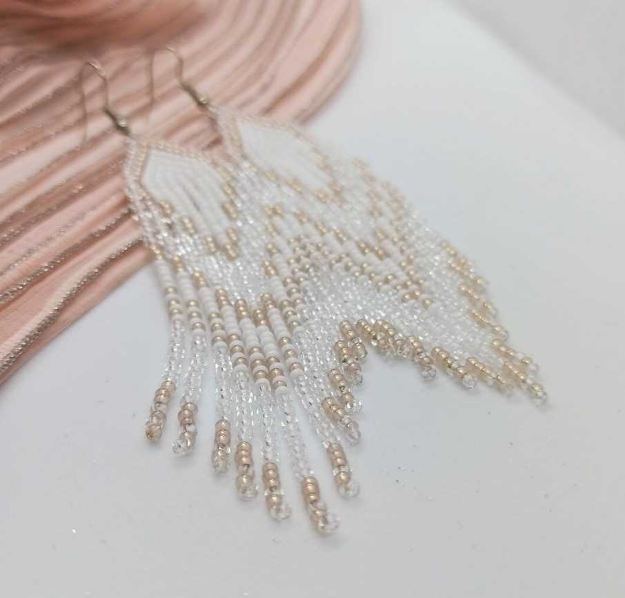 Flecos oro aro gradiente Ombre colgante semilla cuentas joyería pendientes Color bohemio oro a turquesa borla largo hermoso regalo