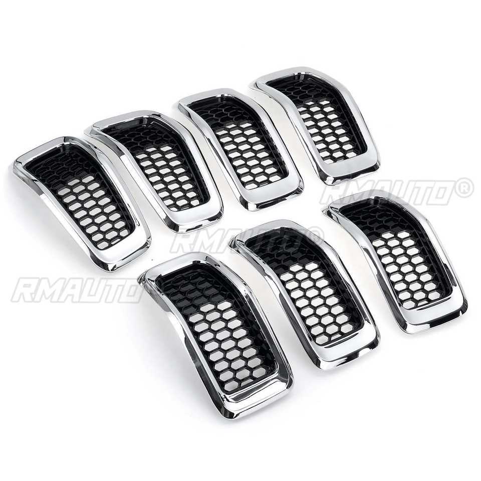 Rejilla de Parachoques Delantero Cromada, Reemplazo de Rejilla de Radiador, Rejilla de Entrada de Aire Deportiva Compatible con Jeep Cherokee 2014 2015 2016 2017 2018, Accesorios para Automóviles