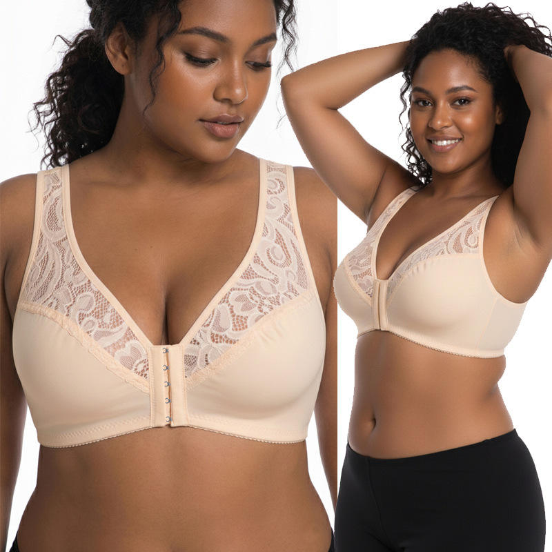 Sujetador con cierre frontal, lencería sexy de talla grande, sujetador push-up inalámbrico para mujer, sujetador de encaje con patchwork, estilo chaleco, efecto lifting, gran oferta transfronteriza