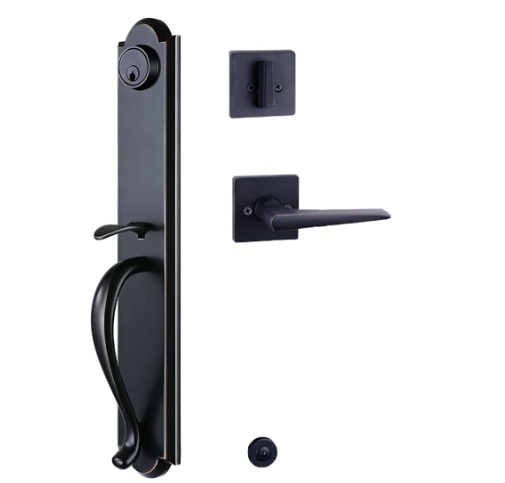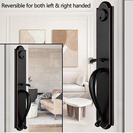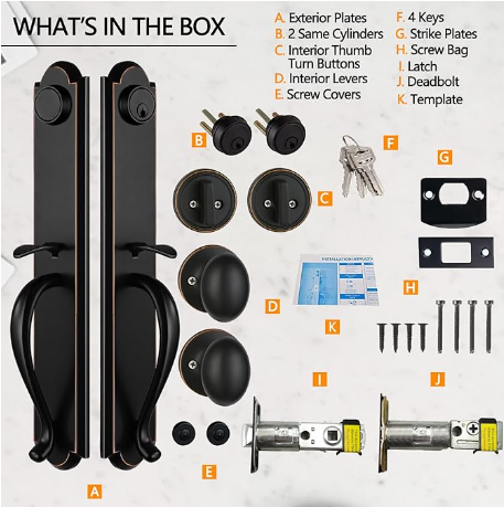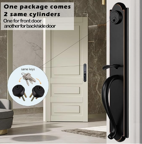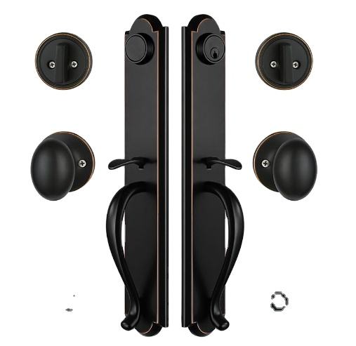 Juego de manija de puerta doble delantera para puerta delantera exterior Acabado en bronce envejecido Manija de entrada con llave y juego de manija ficticia