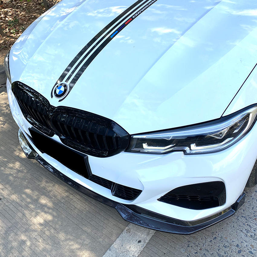 Front Lip Splitter For Bmw 3 Series G20 M Pack 2019 2022 Piano Black Carbon Fiber Texture PP Material