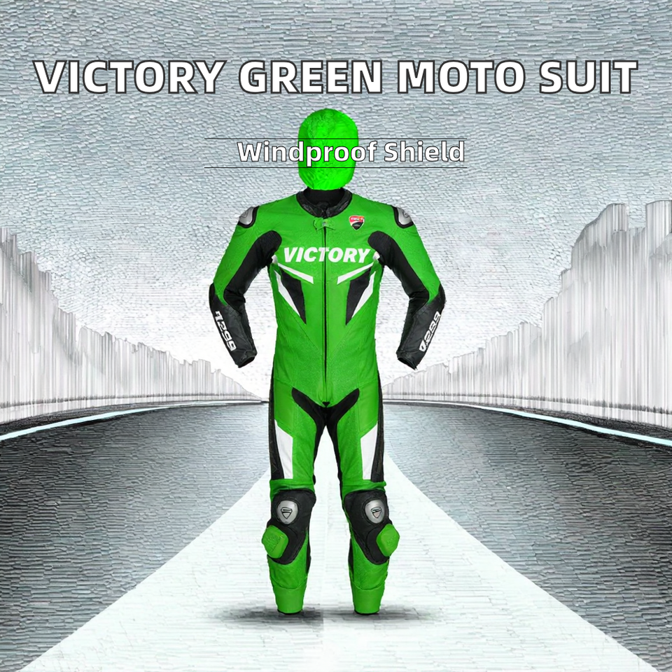 Traje de Motociclismo de una Pieza con Logotipo Frontal Personalizado en Color Verde Victory, Traje de Carreras de Motocicleta Profesional de Nailon PE EVA con Protección para Motociclistas