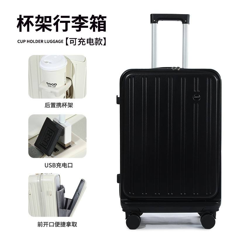Maleta de mano con apertura frontal de 20 pulgadas con portavasos para mujer, viajes de ocio, color sólido, ruedas giratorias de 360 grados