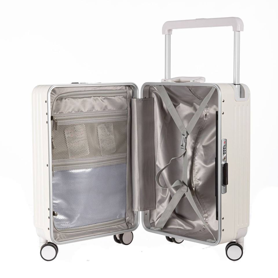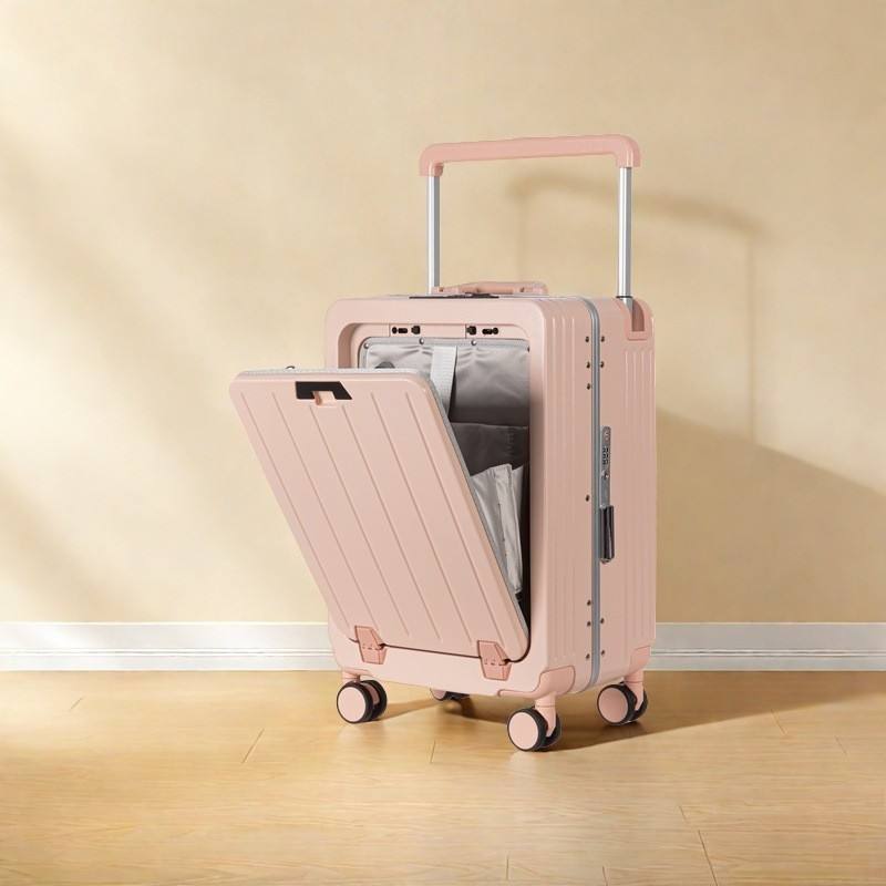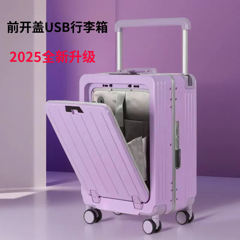 Maleta con Apertura Frontal y Puerto USB de 20 Pulgadas con Candado de Combinación para Viajes de Negocios, Color Sólido, Ruedas Giratorias, Primavera 2025