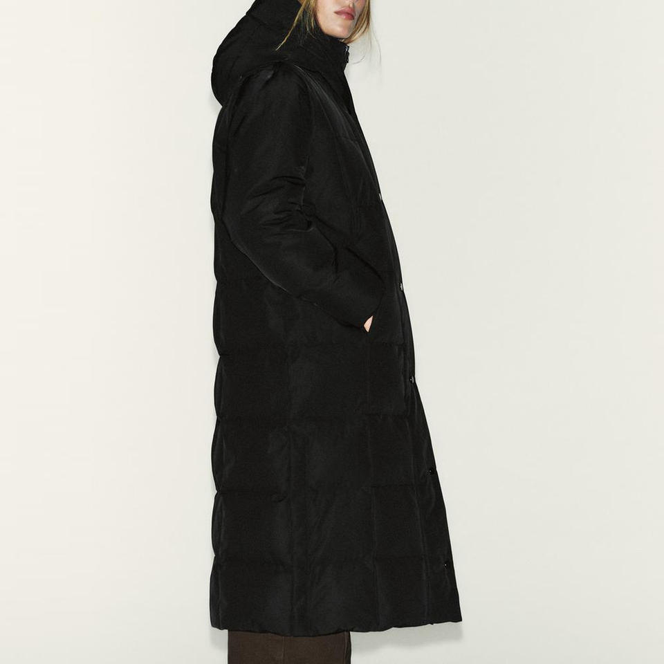 Chaqueta acolchada con bolsillos delanteros y cierre de cremallera/cuello alto con capucha con cordón ajustable y material transpirable de manga larga
